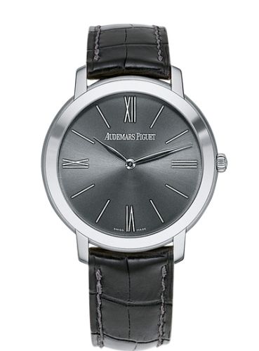 The Audemars Piguet 15093BC.OO.A002CR.01 features a 39mm White Gold case, Grey dial, 20m water resistance, Sapphire crystal.