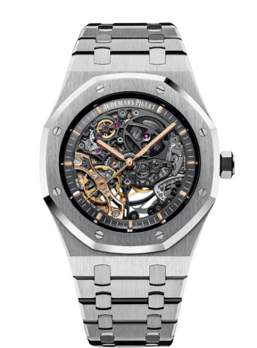 The Audemars Piguet 15407ST.OO.1220ST.01 features a 41mm Stainless Steel case, Skeleton dial, 50m water resistance, Sapphire crystal.