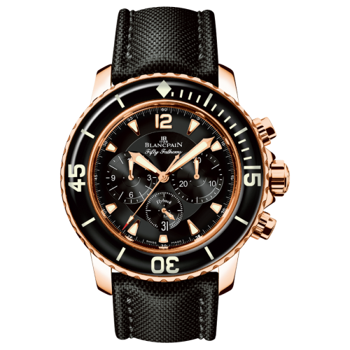 The Blancpain 5085F-3630-52 features a 45mm Red Gold case, Black dial, 300m water resistance, Sapphire crystal.