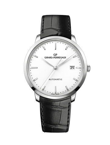 The Girard-Perregaux 49555-11-131-BB60 is powered by a GP03300-0030 movement, featuring Hours, Minutes, Seconds, Date.