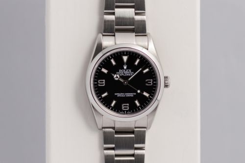 The Rolex 114270 features a 36mm Stainless Steel case, Black dial, 100m water resistance, Sapphire crystal.