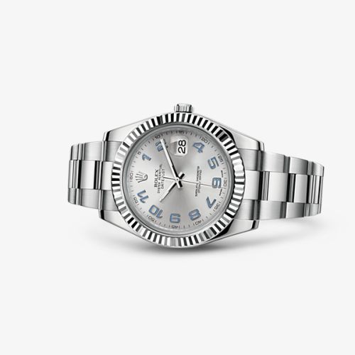The Rolex 116334 features a 41mm White Gold, Stainless Steel case, Silver dial, 100m water resistance, Sapphire crystal.