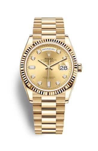 The Rolex 128238 features a 36mm Yellow Gold case, Champagne dial, 100m water resistance, Sapphire crystal.