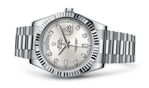 The Rolex 218239 features a 41mm White Gold case, Silver dial, 100m water resistance, Sapphire crystal.