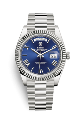 The Rolex 228239 features a 40mm White Gold case, Blue dial, 100m water resistance, Sapphire crystal.